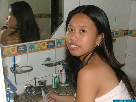 Little Brown Fucking Machines: Petite bargirl washing her pussy and taking a leak before action