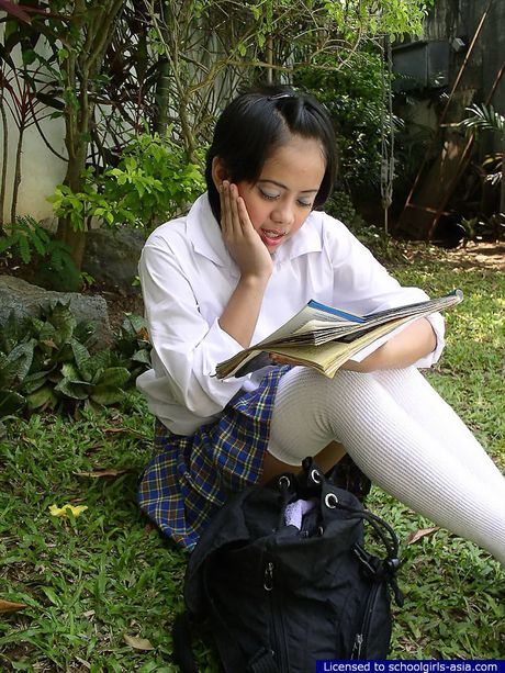 Schoolgirls Asia: Petite cutie spreading and flashing her neat love holes outdoors