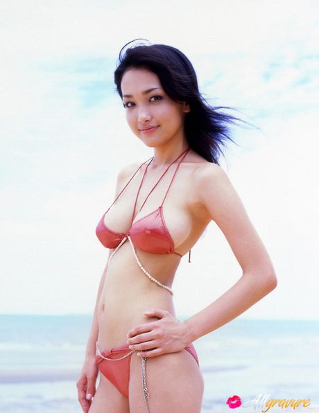All Gravure: Reon Kadena Asian with big melons is very sexy on the sea shore