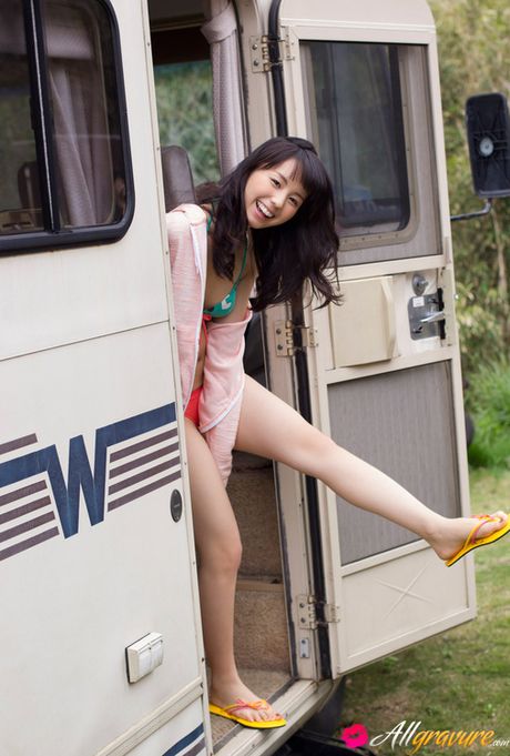 All Gravure: Rina Koike Asian in socks and colorful bath suit is so playful
