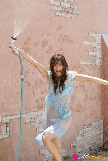 All Gravure: Rola Chen Asian plays with outdoor shower on body over lingerie