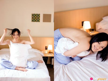 All Gravure: Sayuri Oyamada Asian shows naked back when is going to sleep