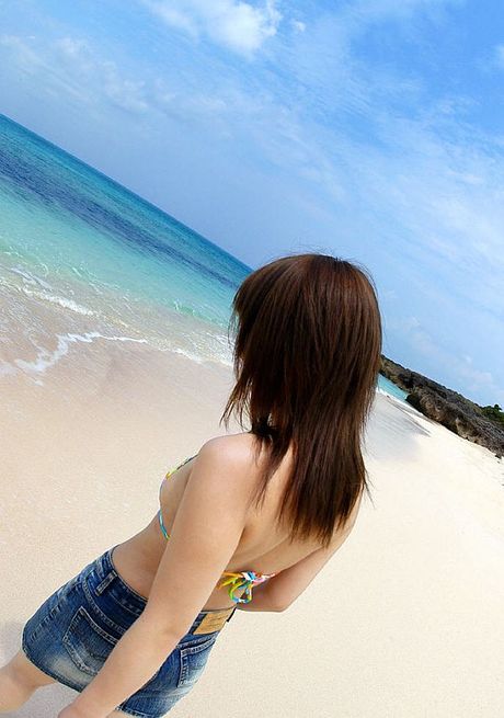 Idols 69: Sexy Asian model in a bikini is enjoying the hot sun and sand while flirting