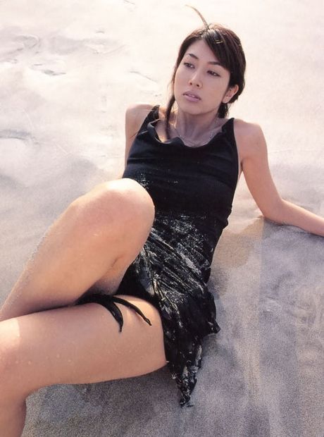 All Gravure: Sexy asian temptress laying around on the beach in a short dress