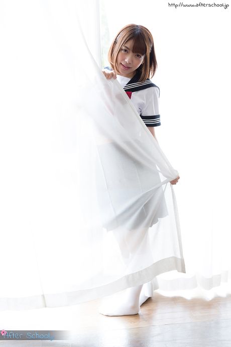 After School: Sexy Japanese schoolgirl Mari Rika strips and shows her hairy pussy
