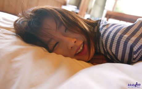 Idols 69: Sexy Japanese teen Akane Sakura shows off her tiny tits and hairy cunt