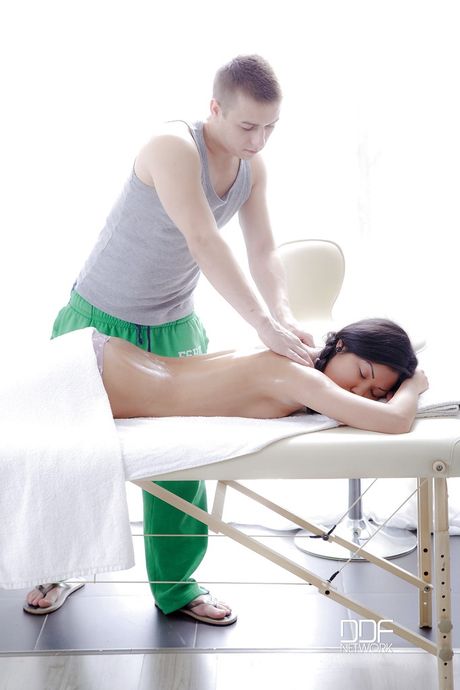 Euro Teen Erotica: Slender asian dark hair teen Veiki in sexy panties hard fucked in bald pussy after sucking cock