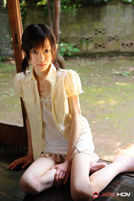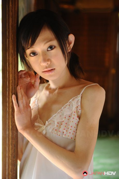 Japan HDV: Slender hot teen Aoba Itou poses in her white night gown on the floor