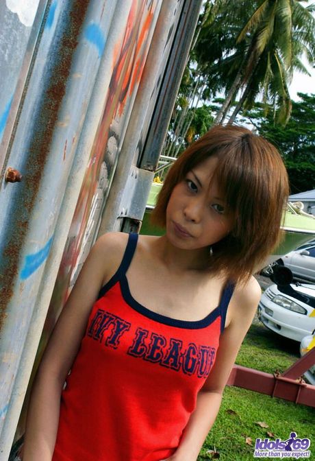 Idols 69: Slutty Asian teen poses in her red lingerie showing her great tits