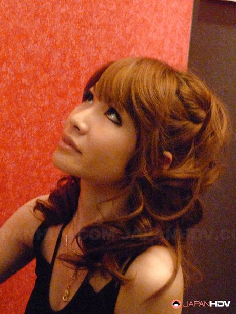 Japan HDV: Stunning japanese red-haired Shiori Amano in nice skirt work with wet lips on cock and takes a cum blast in mouth