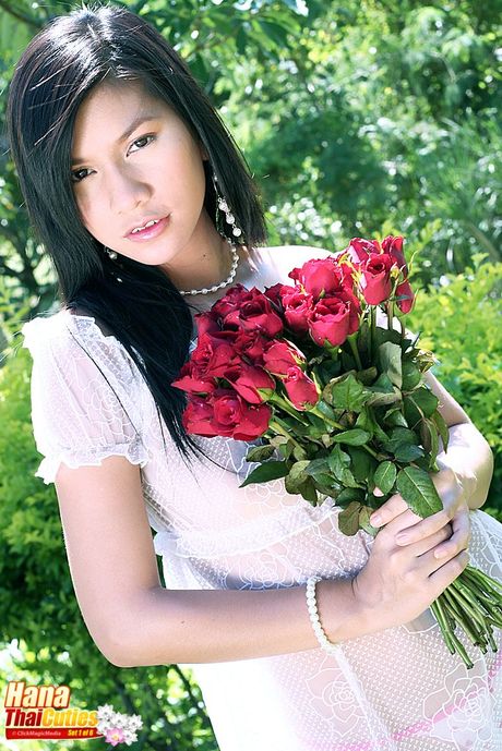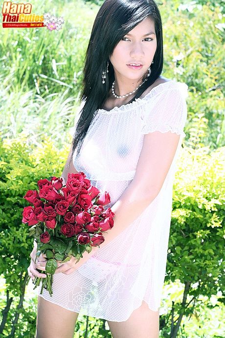 Thai Cuties: Superb Asian teen Hana strips and shows her big racks and ass in the backyard