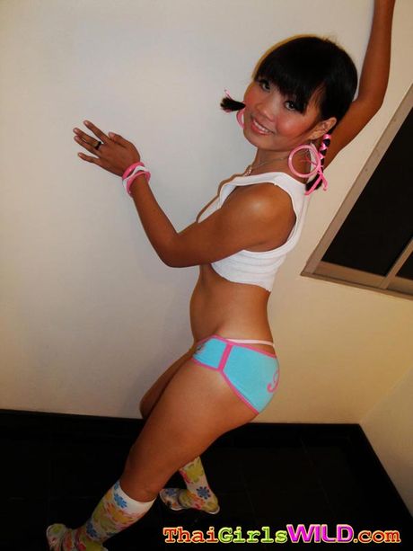 Thai Girls Wild: Thai pigtail cutie stripping then sucking and fucking
