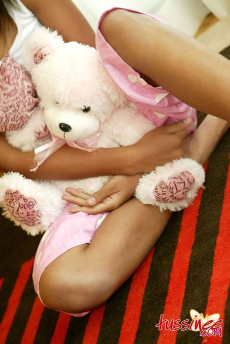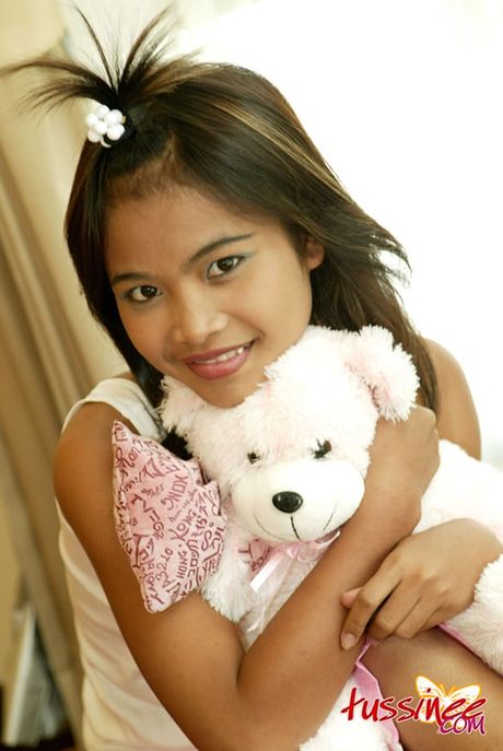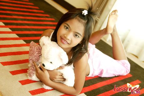 Tussinee: Thai Teen Tussinee plays with a teddy bear in bed