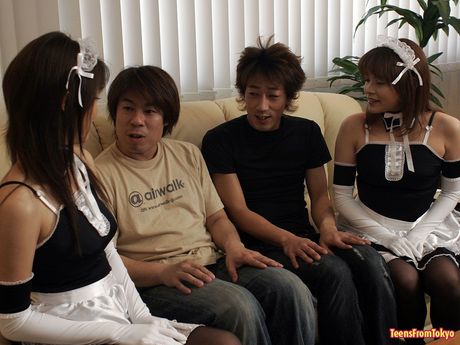 Teens From Tokyo: Three dirty Japanese maids sharing two stiff tiny cocks