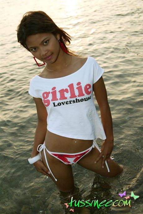 Tussinee: Tiny teen Thai girl takes a swim in the Gulf of Thailand