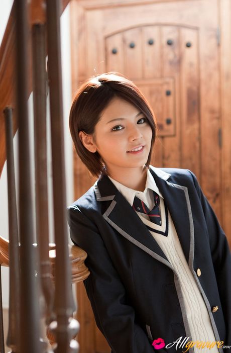 All Gravure: Tsubasa Akimoto Asian in sexy uniform enjoys her way to school