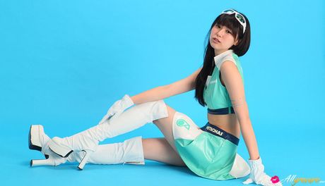 All Gravure: Tsukasa Arai Asian is sexy steward in short skirt and long boots