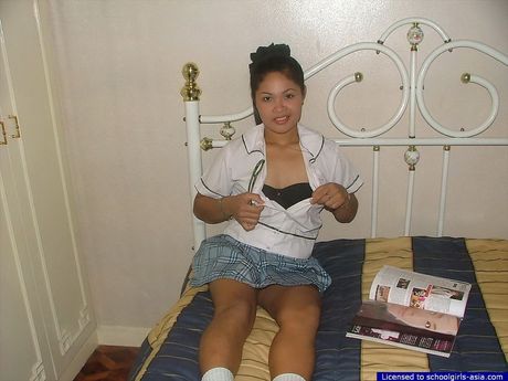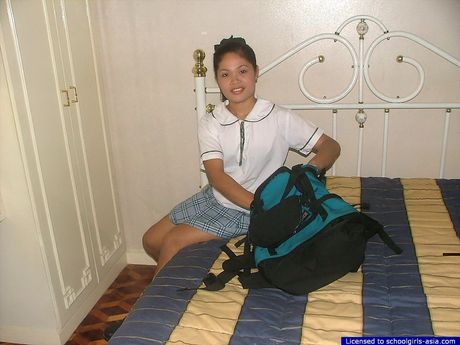Schoolgirls Asia: University student dropping her uniform and panties to show some pink