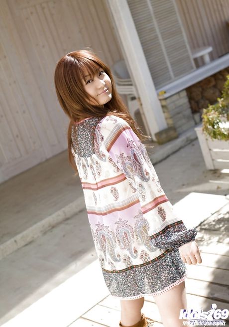 Idols 69: Very attractive japanese cutie Rina in fancy skirt baring her butt outdoor