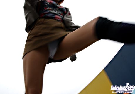 Idols 69: Very attractive japanese hottie Kana in fancy pantyhose shows hairy twat