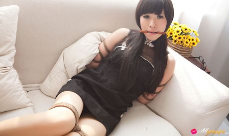 All Gravure: Yuko Asian in heels and cute dress has hands tied of her boobs